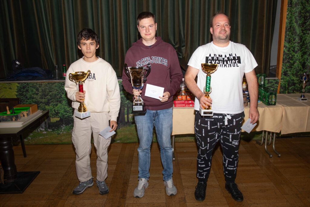 Dahinter wurde beherzt um die restlichen Spitzenplätze gekämpft, wobei die Entscheidungen erst in den allerletzten Partien des Turniers fielen. Rosol Philipp erzielte starke 10 Punkte und wurde Zweiter, Ing. Rainer Staberhofer gelang mit einem starken Finish noch der Sprung aufs Podest. 9 Punkte und eine gute Buchholwertung reichten schlussendlich zum verdienten dritten Platz. Mit zahlreichen Kategoriepreisen sowie Sachpreisen für alle Teilnehmerinnen und Teilnehmern endete dieses schöne Turnier. Der Schachklub Leoben freut sich schon auf eine wiederum zahlreiche Teilnahme im nächsten Jahr!