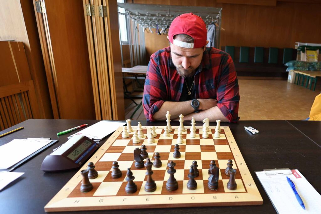 Daher ging man sehr motiviert und konzentriert in den Wettkampf. Allerdings begann er aus Leobner Sicht nicht besonders hoffnungsvoll, denn auf Brett 1 musste unser Kapitän eine Niederlage hinnehmen und am 2. Brett endete die Begegnung mit einem Unentschieden. Die Entscheidung sollte auf den beiden hinteren Brettern fallen: Manfred setzte sich in einer langen Partie schlussendlich durch, damit war der Ausgleich im Mannschaftskampf erzielt.